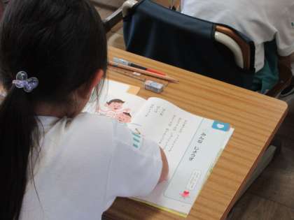 【下】家族や友達が上手にできることを考える道徳の時間です。