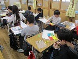 【中】学級目標の周囲を飾る掲示物づくりをしています。
