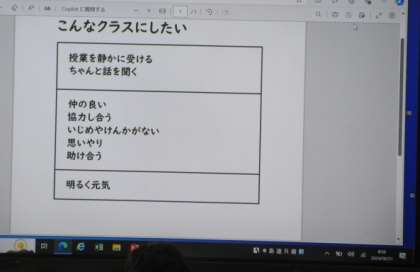 「最高のクラスにするための学級目標を確認しよう」。