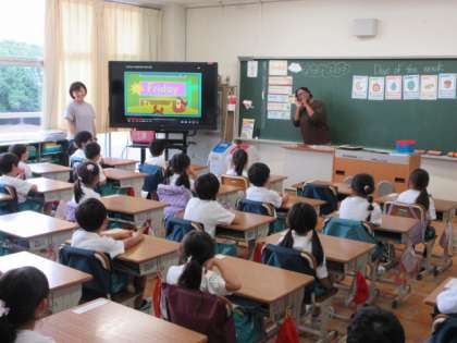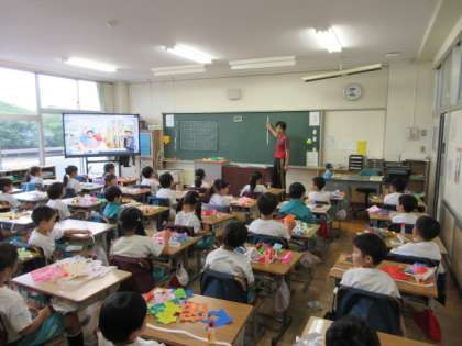 英語専科の先生、ALTの先生の発音に合わせて、曜日はすらすらです。