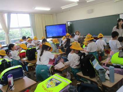 すっかり慣れた様子で帰りの準備をしていました。タブレットも手際よくランドセルへ。