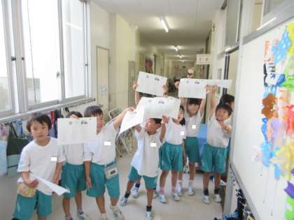 【中】書き込んだワークシートを誇らしげに見せてくれました。