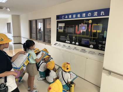 【写真】は「ゴミ焼却処理の流れ」を確認する様子です。