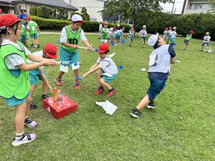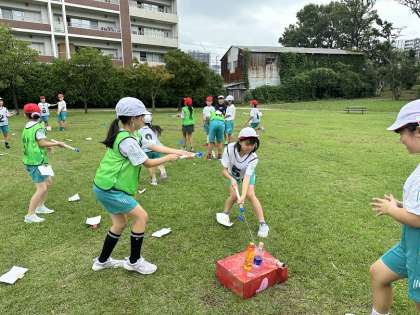4年生が理科学習の発展として「水鉄砲大会」を行いました。