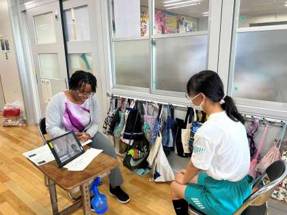 ALTの英語での質問に、どの児童も意欲的に返答していました。