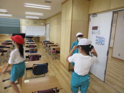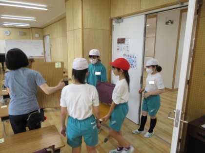 登校してすぐB棟に駆け付け、3・4年生の机・椅子を運んだり