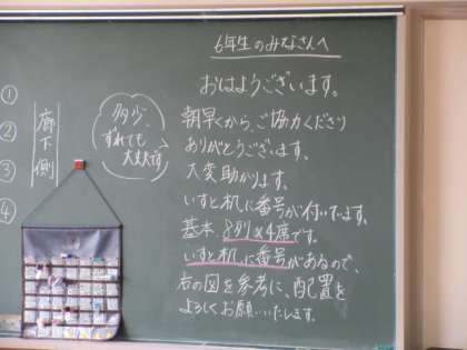 今朝は、3年生と4年生(2学級)の教室移動が行われました。