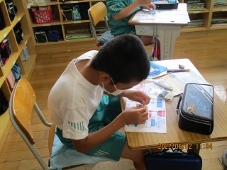 初めての裁縫 公開日 2022/06/02 更新日 2022/06/02 お知らせ 5年生の家庭科の授業の様子です。初めての裁縫です。動画をみながら玉結びに挑戦しました。なかなか上手くいかないようです。