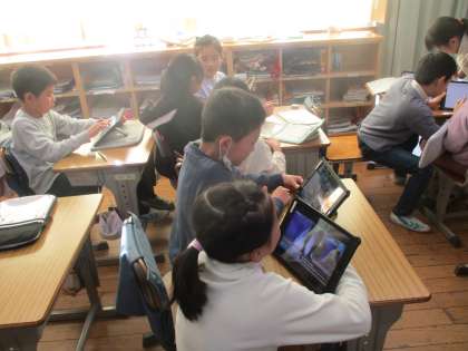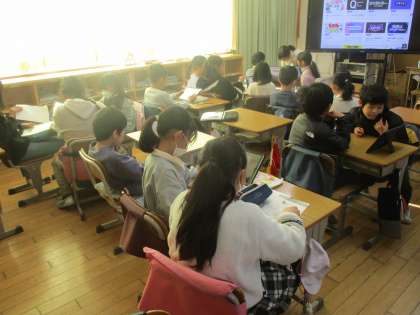 写真は、3年生の総合的な学習の時間の授業風景です。