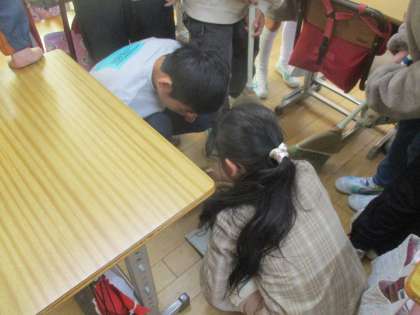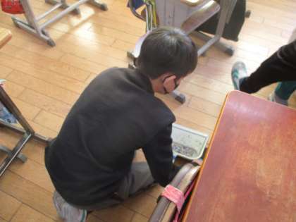4年生の教室の横を通ると、クラスのみんなで何やら活動する姿がありました。