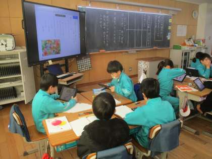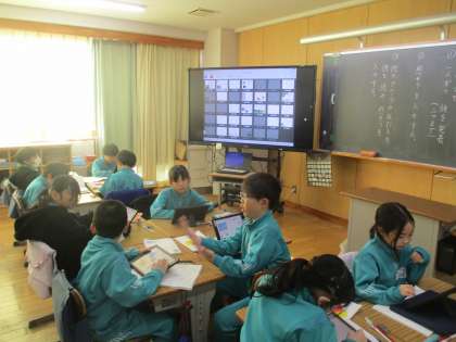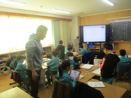 3年生の教室の横を通ると、1人1台端末を使ってグループ活動をする姿がありました。
