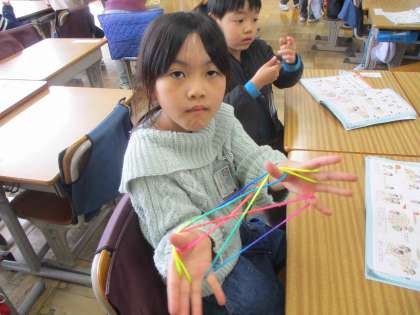 2/2(金)【楽しく・ろうち】1年むかしあそび 公開日 2024/02/02 更新日 2024/02/02 お知らせ 1年生の生活科、むかしあそびの様子です。 【上】けん玉遊び、このあと上手く球を乗せることができました。 【中】レインボーの糸であやとり大成功です。 【下】みんな笑顔です。