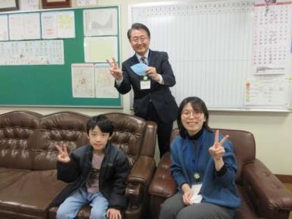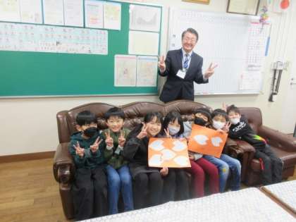 業間休みに、校長室に素敵なお客様が来てくれました。