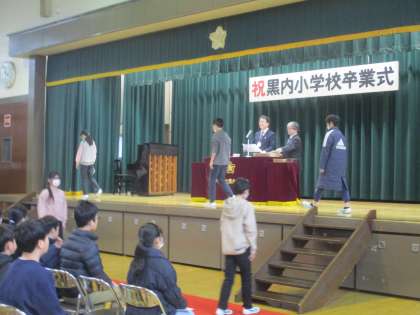 厳粛な雰囲気の中、学級担任からの呼名の後、一人一人がしっかりと返事をし、奈幡校長と目を合わせ立派な態度で証書を受け取る姿がとても印象的です!