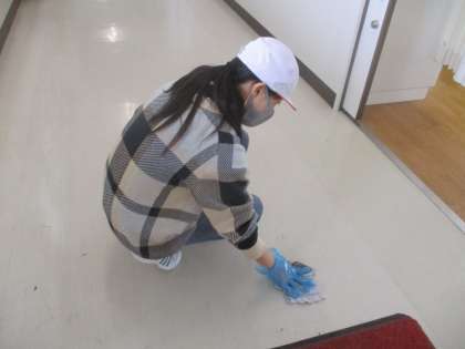 普段の掃除の時間では、なかなか取ることができない部分を丁寧に磨く6年生。