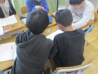 数学的思考力をフル活用して、中学校への準備万全の6年生の素敵な一コマでした。