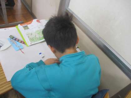 1年生の教室の横を通ると、楽しそうな声がきこえてきました。