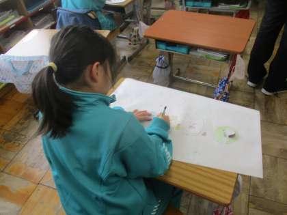 作品バッグには、自分の思いを、新入生へのプレゼントには、「ようこその気持ち」をたっぷり込めて絵を描く子供たちの姿が印象的でした。