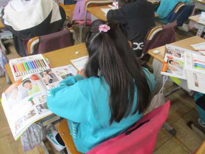 家族が笑顔になるところを想像しながら、自然と笑顔になって学習に取り組む1年生の姿が印象的でした。