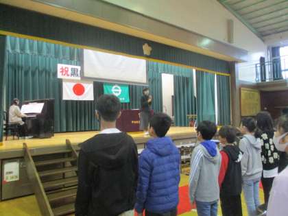 音楽専科の先生のリードのもと、素敵な歌声を響かせる6年生にはは心を動かされるとともに、レベルの高い仕上がりには感心させられるばかりでした。