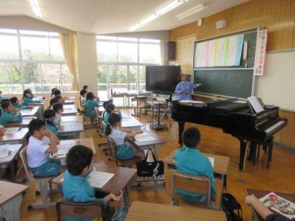 【下】音楽専科の先生との初めての授業もわくわくです。