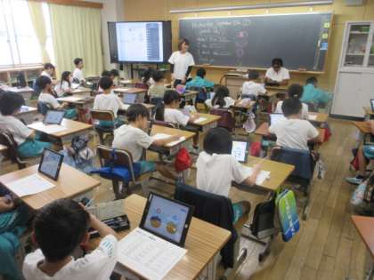【上】「25を1000倍した数は、25000です」。大きな数、完璧です。