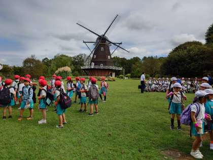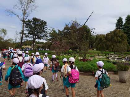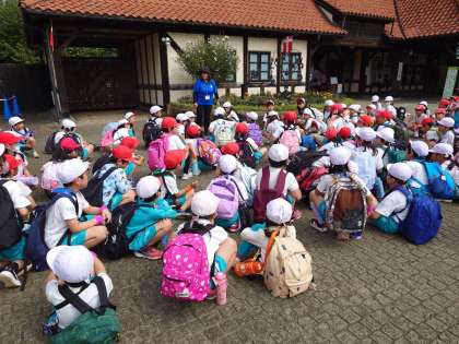 B隊(5・6・7組)は写真撮影・童話館見学から