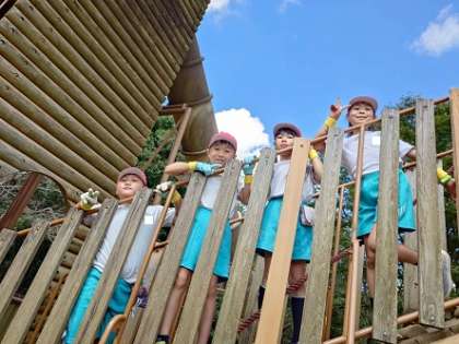 わんぱく王国ゾーンのアスレチックにチャレンジ!!