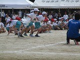 5年生団体競技、綱引きです。半分の児童はグラウンドを1/4周して、応援に入ります...