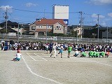6年生の団体競技、勝利の道です。みんなで馬を作り、その上を一人の児童が渡っていく速さを競います。チームが一つになって戦う姿に感動しました。