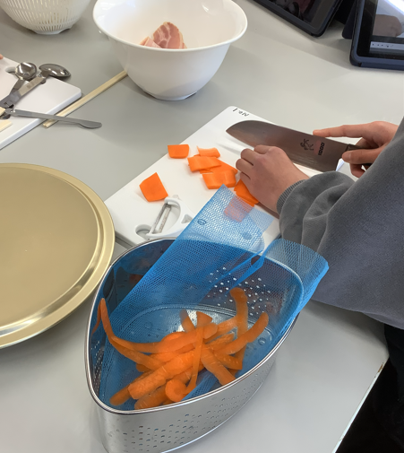 ほっぺたが落ちる料理 公開日 2025/12/18 更新日 2025/12/18 お知らせ 6年生が調理実習で「ほっぺたが落ちる」料理を作っています。心をこめて丁寧に食材を調理していました。さぞかしおいしい料理ができることでしょう。