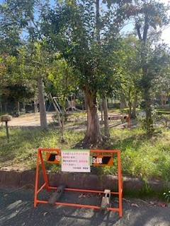 郷州公民館隣の中央公園にスズメバチの巣が確認され、現在、巣の周囲に注意喚起のロープが張られています。スズメバチが飛んでいるため危険ですので、学校でも周知しましたが、ご家庭でもお子様に絶対に近寄らないようお話しください。