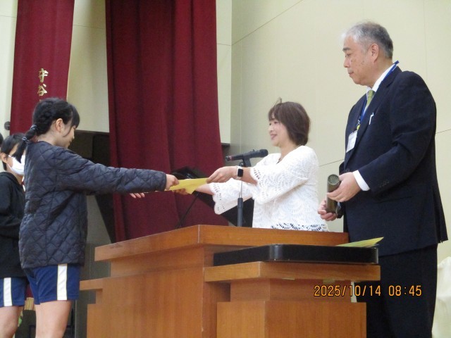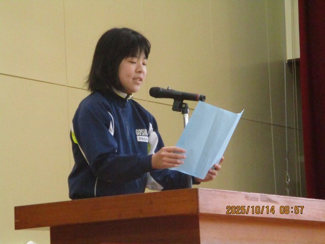 今日は後期の始業式です。5年生のピアノ伴奏で元気よく校歌を斉唱しました。同じく5年生の代表が後期の目標として委員会や行事を頑張りたいと発表してくれました。また、表彰式があり、たくさんのお友達が表彰されました。後期も自分の目標に向かってチャレンジしてくださいね!