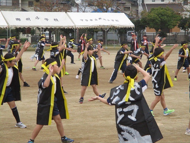 ソーラン節でははっぴを着て練習しました。4年生のはっぴの後ろには子どもたちそれぞれの名前にちなんだ文字が書いてあります。
