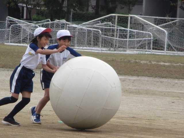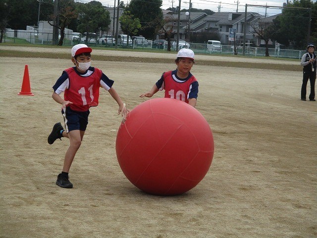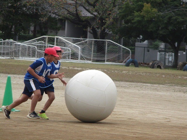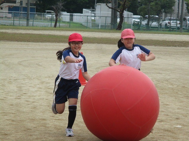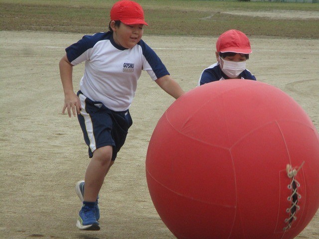 大玉リレーでは、練習を重ね上手に転がすことができるようになりました。