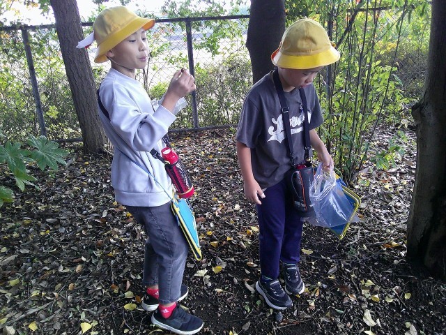 目を輝かせながら活動する様子は、とても楽しそうで、秋の自然に触れる貴重な時間となりました。拾ってきた材料を使って、どんな素敵なおもちゃができるか、今から楽しみです!