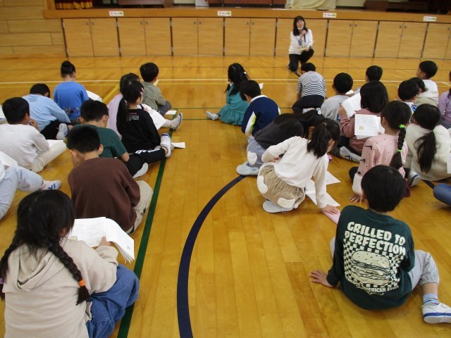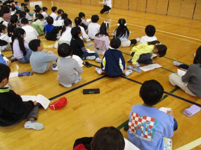 今日の3時間目、体育館で校外学習についてのお話をしました。