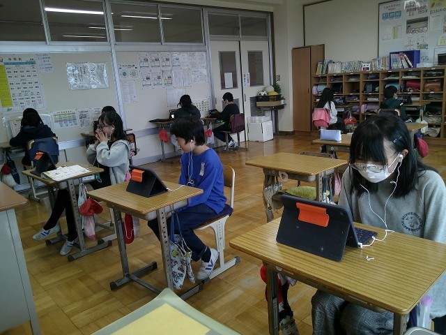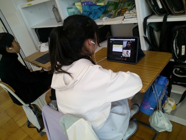 オンライン英会話を行いました。5年生になって2回目でした。お話ができて、「楽しかった!」「優しく声をかけてもらえた。」「ちょっと難しかった。」とそれぞれの感想を持ったようでした。1人ひとりが英会話をする機会は貴重なので、よい経験になったと思います!今年度はあと1回あります!