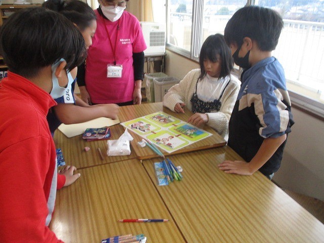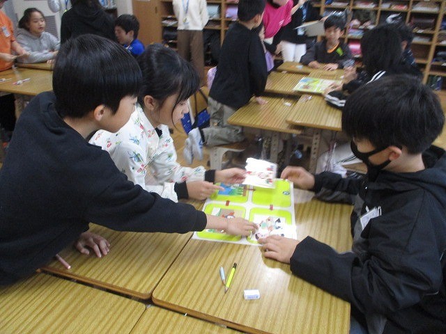野菜が食卓や給食に出るまでの流れや緑黄色野菜とそれ以外の野菜の名前をカードを使って覚えました。