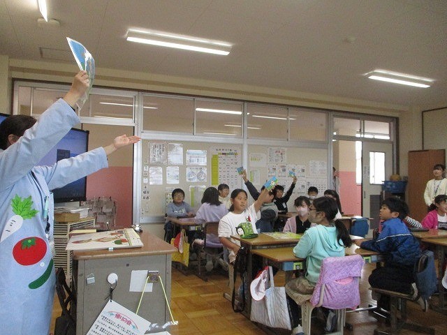 守谷市保健予防課の方をお招きして、4年生が生活習慣病予防健康教育「野菜博士を目指せ!」を行いました。