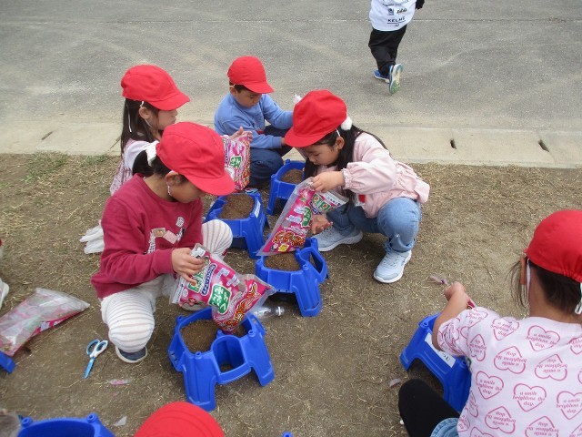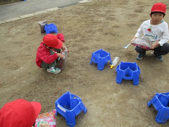 前日に球根の観察をし、いよいよ今日は植木鉢にチューリップの球根を植えました。