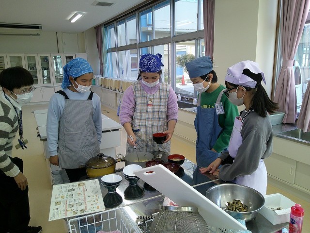 ご飯のやわらかさや、味噌汁の大根の固さを感じる班もありました。