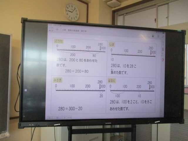 今日の算数は280と2.8をいろいろな見方をして表すことから、小数も整数も仕組みは同じことを学びました。おうちでもどんな学習をしてきたか問いかけてみてください。お家の方に話すことでさらに理解が深まります。