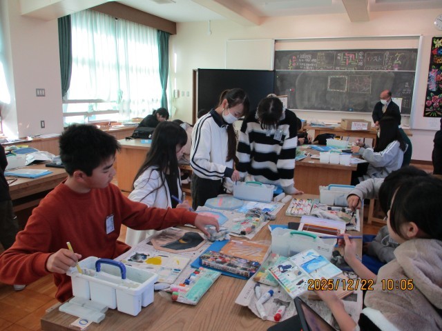 6年生の図工は卒業制作で時計づくりをしていました。マイブームのものを描いているそうです。鳥だったり魚だったり好きなキャラクターだったり・・・完成した作品は卒業式当日に展示されるそうです。年が明けたらあっという間ですね。