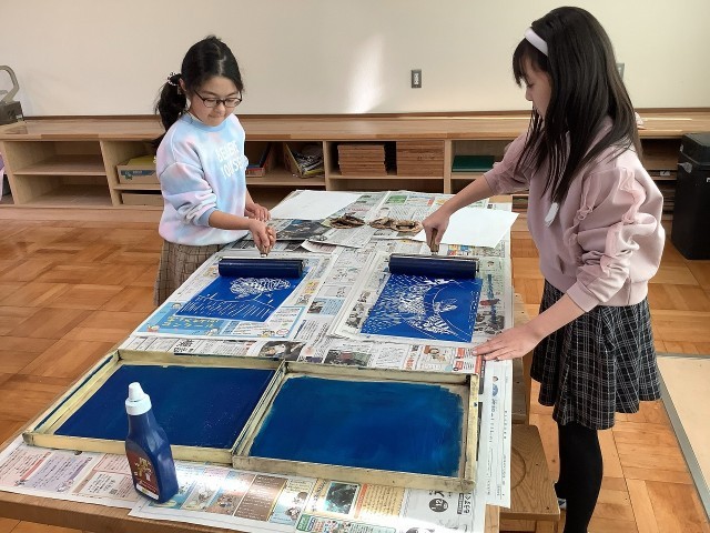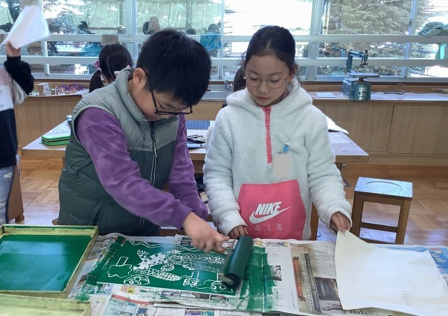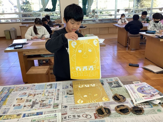 自分が彫った線が実際に紙に写し出されると、どの子もパッと笑顔になり、とても満足げな表情を浮かべていました。