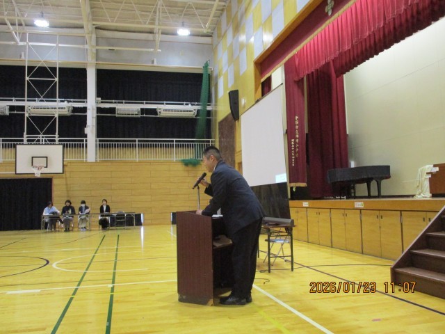 本日、4月に入学を予定されている保護者の皆様を対象に、入学説明会を開催いたしました。黒内小学校区から約30名の新しい仲間が加わり、全校児童375名での賑やかなスタートとなる予定です。令和8年度も、子供たちの笑顔があふれ、一人ひとりが輝ける学校づくりに努めてまいります。保護者の皆様、本日はお忙しい中ご来校いただきありがとうございました。4月の入学式で、元気なお子様たちに会えることを心より楽しみにしております。