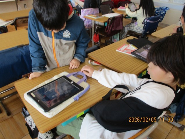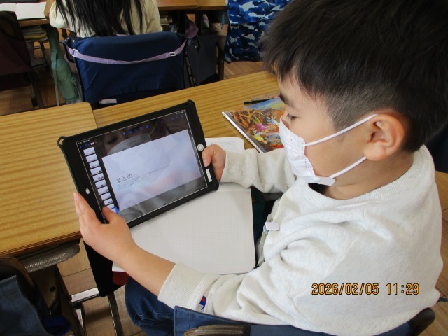 総合的な学習で守谷市について調べたことを発表するためにまとめています。守谷工場博士やアサヒビール、イオンタウンと自分が選んだことについて深掘りしています。