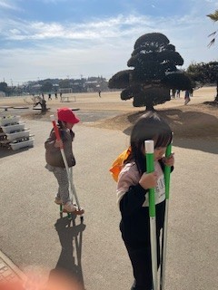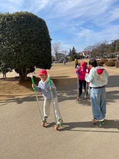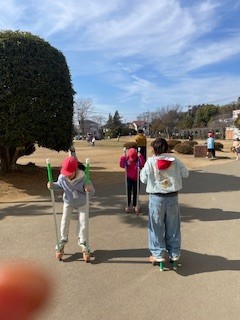 今日も竹馬の練習にみんなが集まってきました。5台しかないので順番待ちです。どうやって交代するのかと様子を見ていると、「10歩歩いたら交代ね」と約束を自分たちで決めて仲よく遊んでいました。「はい、どうぞ」「ありがとう」こうしたやりとりが低学年からできる姿が素晴らしいと思いました。