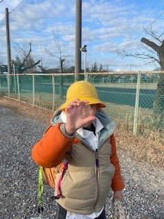 今朝は一段と冷え込みが強く、水たまりには氷が張っていました。 子供たちはその氷を大事そうに抱えたり、光に透かしてみたりと興味津々。「冷たいね!」と言い合いながら、冬ならではの自然の現象を全身で実感していました。