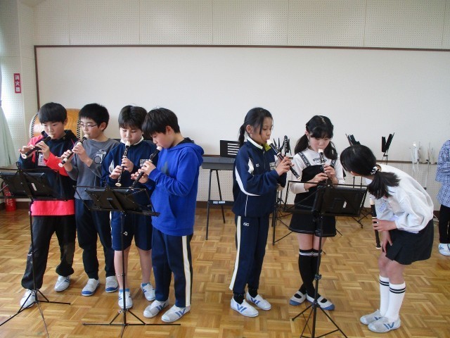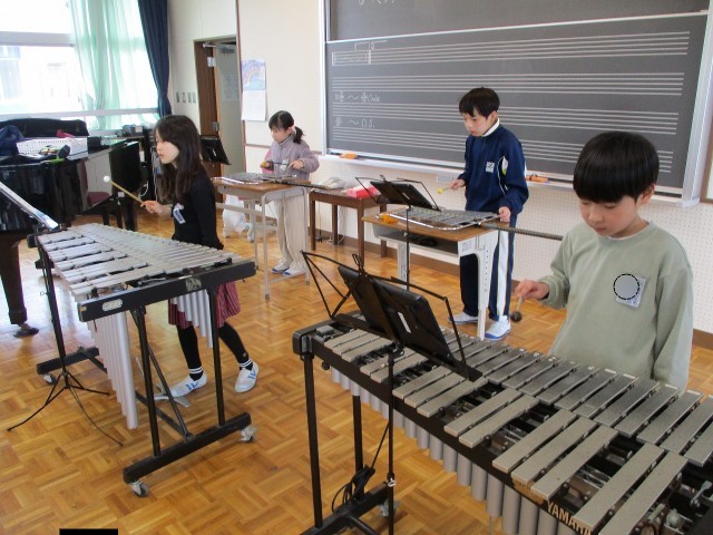 今日は鉄琴や鍵盤ハーモニカ、リコーダーの各パートに分かれて練習しました。互いに聴き合い、教え合いながら、きれいに演奏しようと励んでいました。